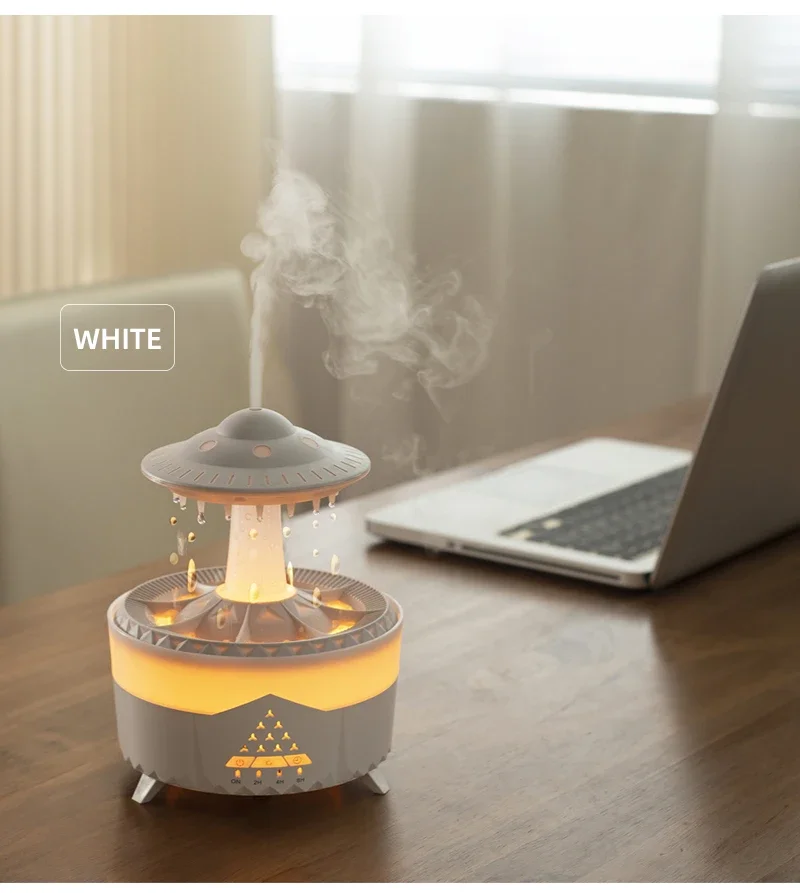 Fashionable appearance: The humidifier is designed in the shape of an alien spaceship, equipped with simulated raindrops, and is also designed with a colorful night light, which is a cute decoration