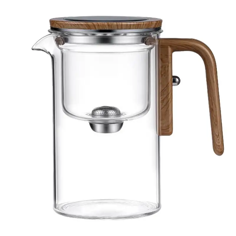 Glass Teapot Water Separation Wooden Handle Glass Tea Kettle With Infuser Detachable Clear Glass Tea Kettle For Tea Brewing
