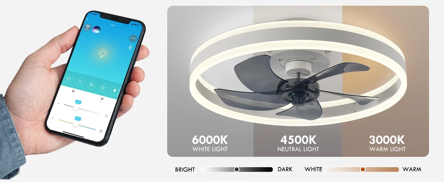 Modern Led Ceiling Fan With Light DC Motor 6-speed Timing Fan 50CM Low Floor Loft Remote Control Decorative Fan With Light